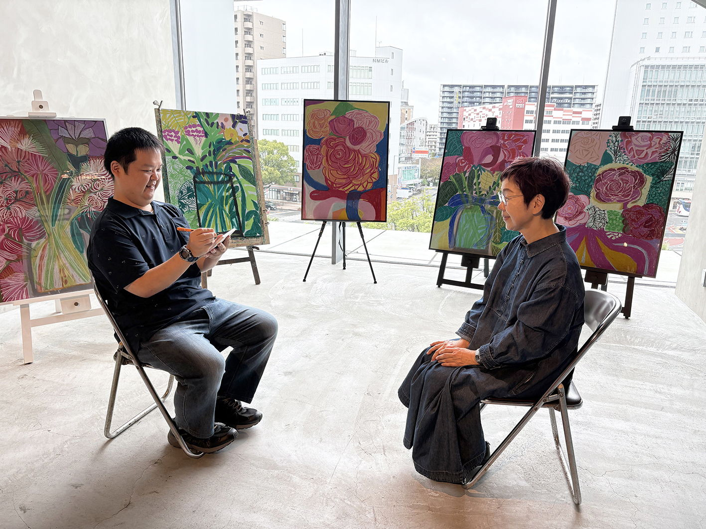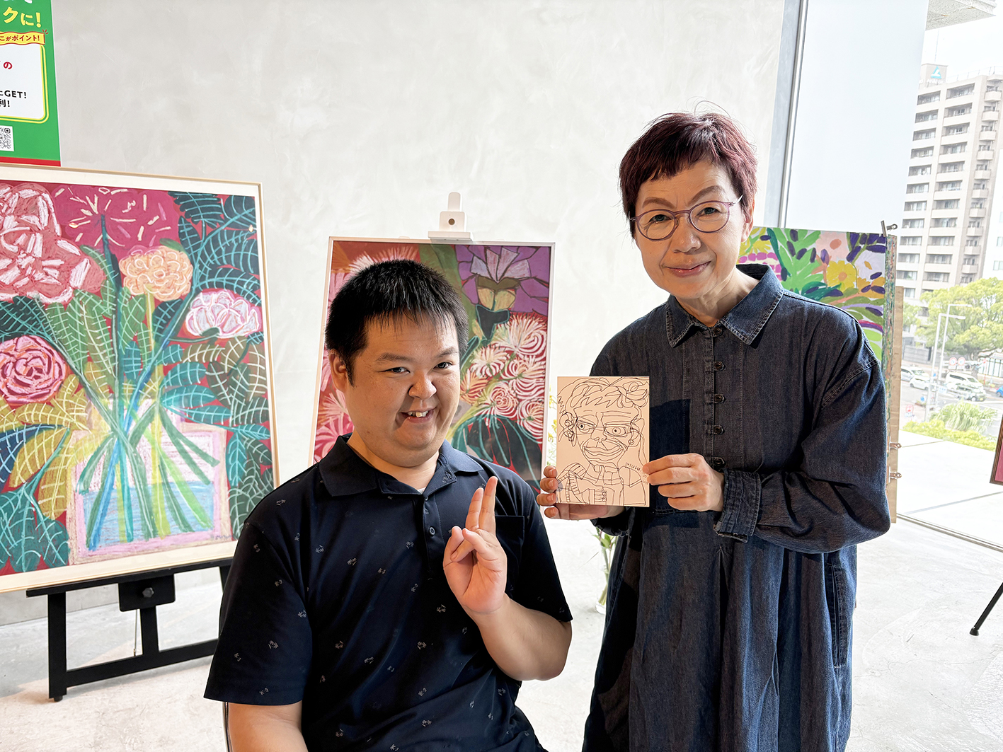 伊達先生には10月11日にアミュプラザみやざきにて開催したライブペインティングにもお越しいただき、中武卓が先生の似顔絵を描きました。