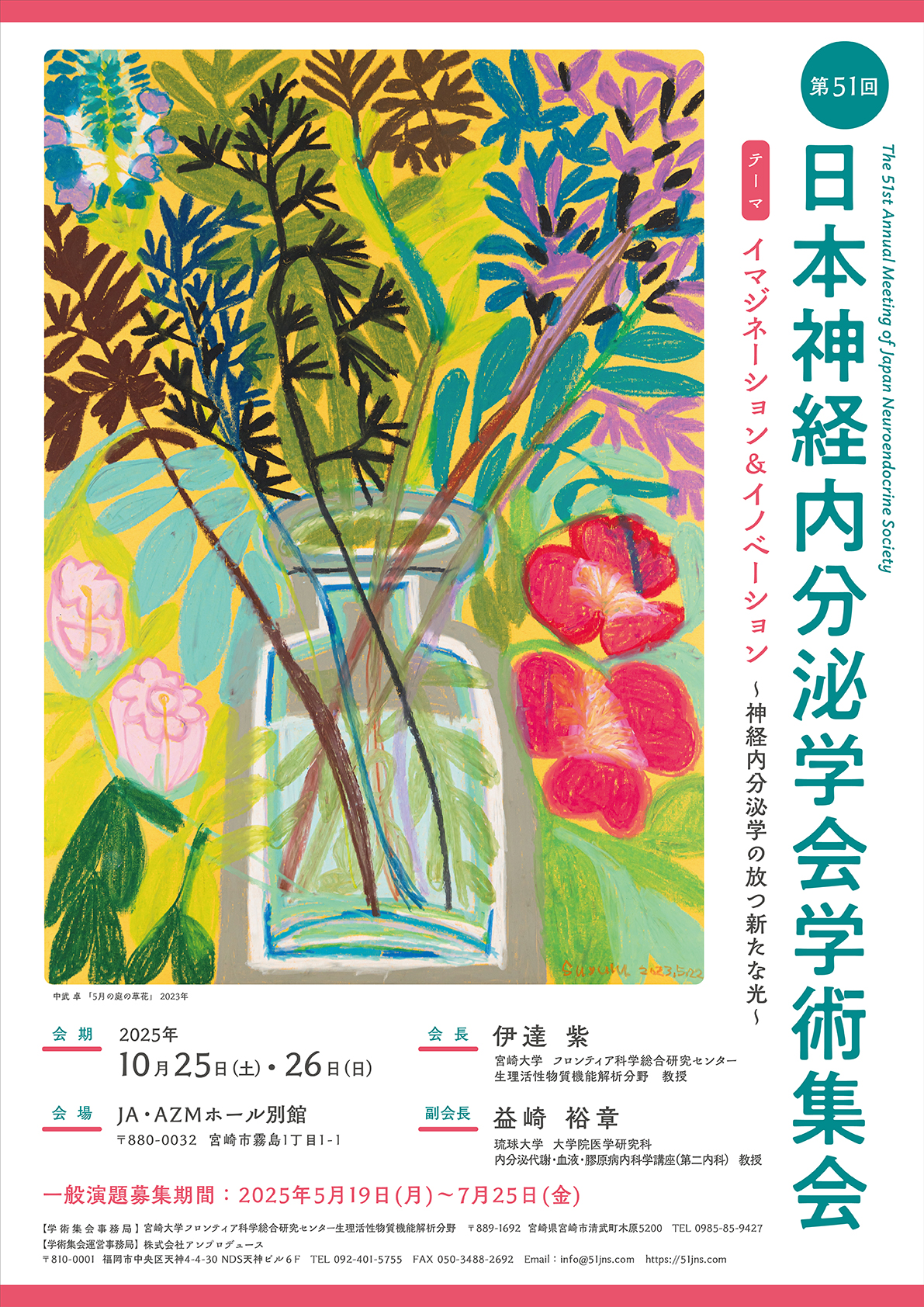 10月25~26日、JA・AZMホール別館で開催された「第51回日本神経内分泌学会学術集会」のポスターメインビジュアルアートに中武卓の作品「5月の庭の草花(2023年)」を採用いただきました。